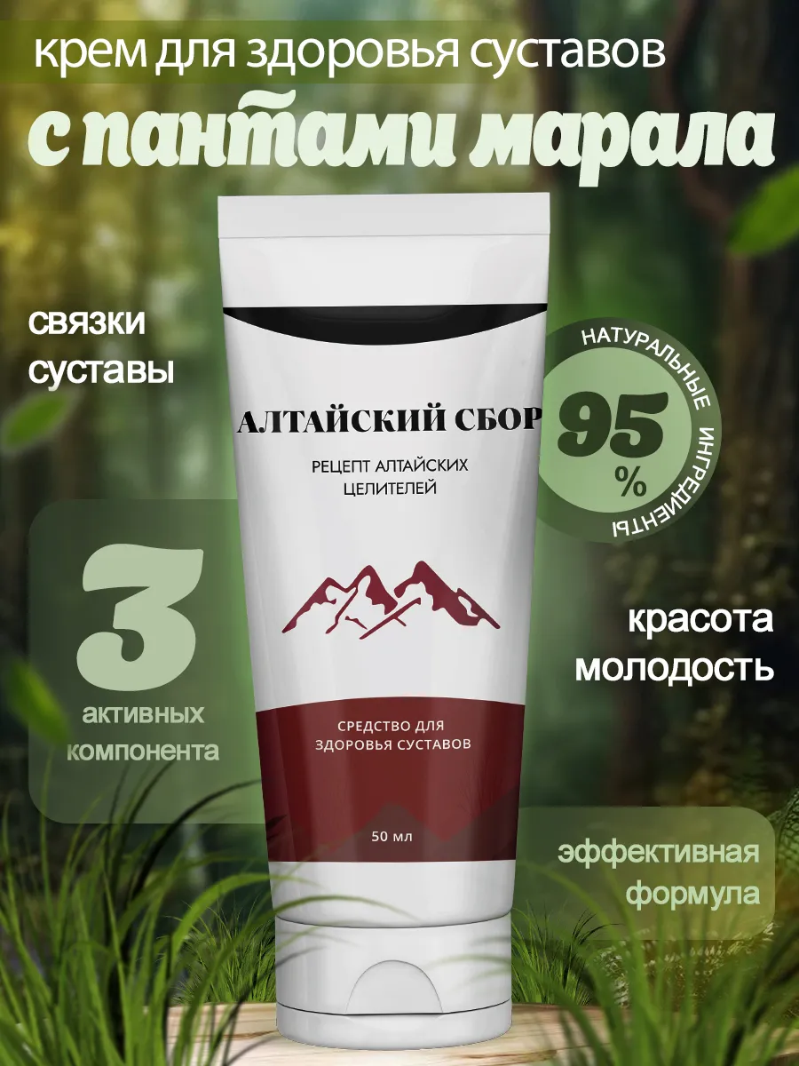 Алтайский сбор — косметический крем-гель для наружного применения, разработанный для нанесения на кожу в области суставов и мышц при чувстве дискомфорта или скованности, связанном с физической нагрузкой. Крем-гель для суставов Алтайский сбор содержит научно сбалансированный комплекс активных компонентов: хондроитина сульфат и глюкозамина сульфат — естественные компоненты хрящевой ткани, метилсульфонилметан (МСМ) — источник органической серы для коллагена, пропиленгликолевый экстракт пантов марала — алтайский биогенный стимулятор, масляный экстракт сабельника, масляные экстракты крапивы и полыни, эфирные масла эвкалипта, мяты и розмарина, а также специализированный разогревающий агент N-(4-нитро-2-феноксифенил)-метансульфонамид. Формула работает комплексно: поставляет вещества, значимые для соединительной ткани, стимулирует местный обмен, усиливает кровоснабжение области нанесения и обеспечивает контролируемое продолжительное ощущение тепла. Гелевая основа обеспечивает лёгкую текстуру, быстрое впитывание и увлажнение кожи, не оставляя жирных следов. Применяется 2–3 раза в сутки в течение 2–3 недель.