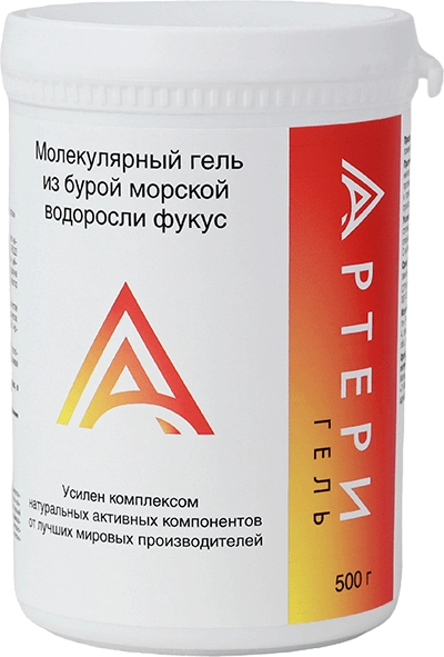 Артери Гель — лечебно-диетический гель на основе морской бурой водоросли фукус, разработанный российскими учёными в наукограде Пущино для комплексной поддержки сердечно-сосудистой системы. Продукт обеспечивает тройное действие на сосуды: очищение от холестериновых бляшек, предотвращение тромбообразования и улучшение кровотока. В состав входят полисахарид фукоидан, запатентованный компонент Sabeet® (экстракт свёклы) и экстракт ферментированного чёрного чеснока FBG22. Артери Гель не является лекарственным препаратом — это диетическое (лечебное) питание для приёма внутрь.