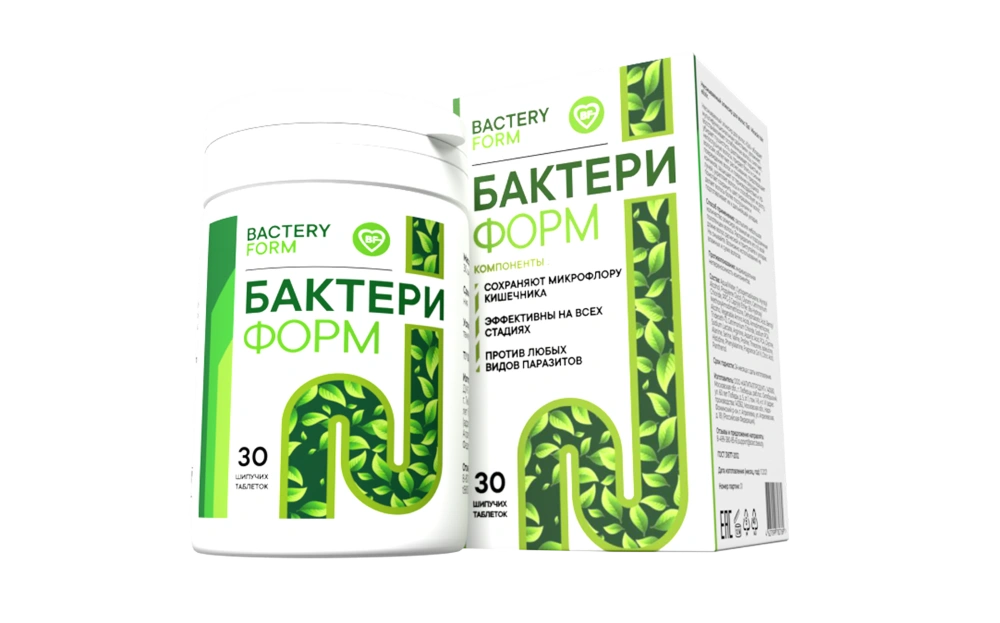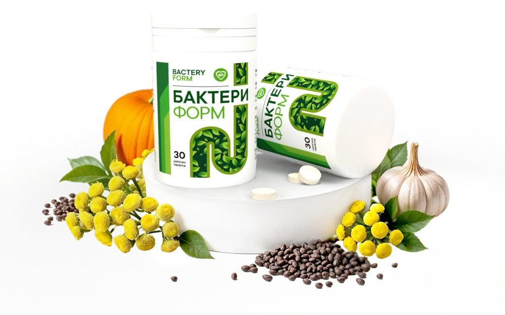 Бактери Форм — антипаразитарный комплекс в форме шипучих таблеток на основе 5 натуральных растительных компонентов, традиционно используемых для очищения организма от паразитов и нормализации работы ЖКТ. Шипучие таблетки от паразитов Бактери Форм содержат: цветки пижмы, семена тыквы, семена чёрного тмина, чеснок и листья чёрного ореха — мощную комбинацию веками проверенных народных антигельминтных растений, каждое из которых действует на свой тип паразитов. Шипучая форма обеспечивает мгновенное растворение в воде, максимальную биодоступность активных компонентов и приятный способ приёма — вместо привычных горьких настоев растворимый напиток с лёгким вкусом. В упаковке 30 таблеток — полный курс на 15 дней. Принимается по 1 таблетке утром и вечером.