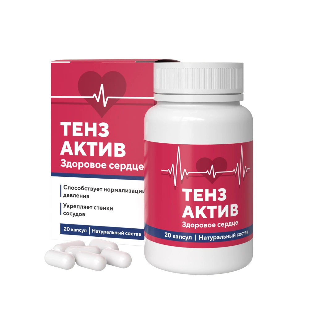 Тензактив — натуральное средство для сердца и сосудов в форме капсул с уникальной 24-часовой формулой действия, разработанное для коррекции заболеваний сердечно-сосудистой системы, стабильного снижения давления, нормализации сердечного ритма и профилактики инфарктов и инсультов. Капсулы для сердца и сосудов Тензактив содержат 15 натуральных биоактивных компонентов: экстракты пиджеума, листьев оливы, чеснока, готу кола, боярышника, ягод асаи, зелёного чая, гинкго билоба, листьев черники, плодов аронии, пассифлоры, сушеницы болотной, вишни, коры белой ивы и маточное молочко. Капсулы закупаются во Франции и имеют уникальное строение: нано-грануляция содержимого обеспечивает постепенное высвобождение действующих веществ — 1 капсула работает 24 часа после приёма.