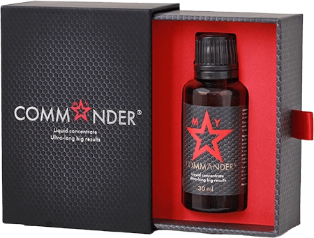 Коммандер (Commander) — мощный натуральный секс-концентрат для мужчин, разработанный для восстановления потенции, усиления эрекции, устранения простатита и возрастных нарушений мочеполовой системы. Продукт выпускается в жидкой капельной форме с мгновенным всасыванием и содержит три бинарные формулы: SMILAX + L-орнитин, гуарана + L-аргинин, чёрная мака + L-цитруллин. Каждая формула представляет собой пару «экстракт + аминокислота», адаптированную под физиологию мужчин старшего возраста. Коммандер не является лекарственным препаратом и применяется в качестве биологически активной добавки к пище.