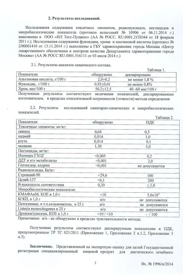 - Испытан в Центральной клинической больнице РАН — статус лечебно-диетического продукта