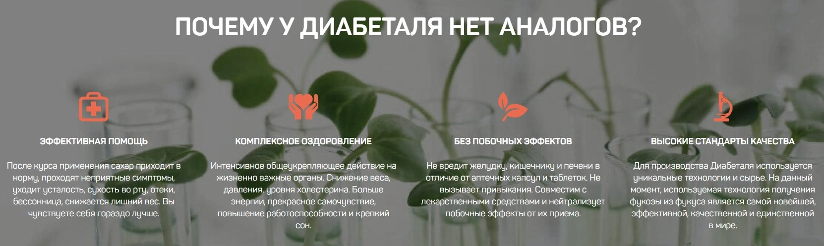 - Содержится только в водоросли фукус и в грудном молоке — у Диабеталя нет аналогов в мире