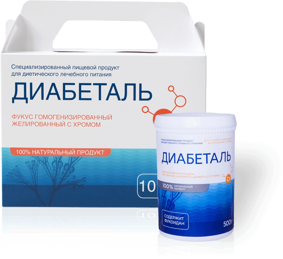 Диабеталь — лечебно-диетическое питание в форме геля (желе) на основе морской водоросли фукус, специально разработанное для людей с сахарным диабетом. Продукт создан российскими научными институтами и незаменим в питании и диетах больных сахарным диабетом, как взрослых, так и подростков. В основе действия лежит уникальный компонент L-фукоза, которая содержится только в морской водоросли фукус и в человеческом грудном молоке. Именно за счёт фукозы происходит нормализация сахара в крови — борьба ведётся не с последствиями и симптомами, а непосредственно с источником заболевания. Это не БАД и не лекарство, не капсула и не таблетка — это полноценное лечебное питание.