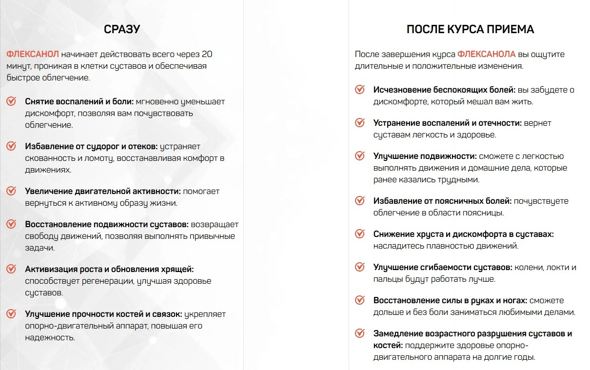 Флексанол обладает рядом уникальных преимуществ, которые отличают его от других средств для суставов: