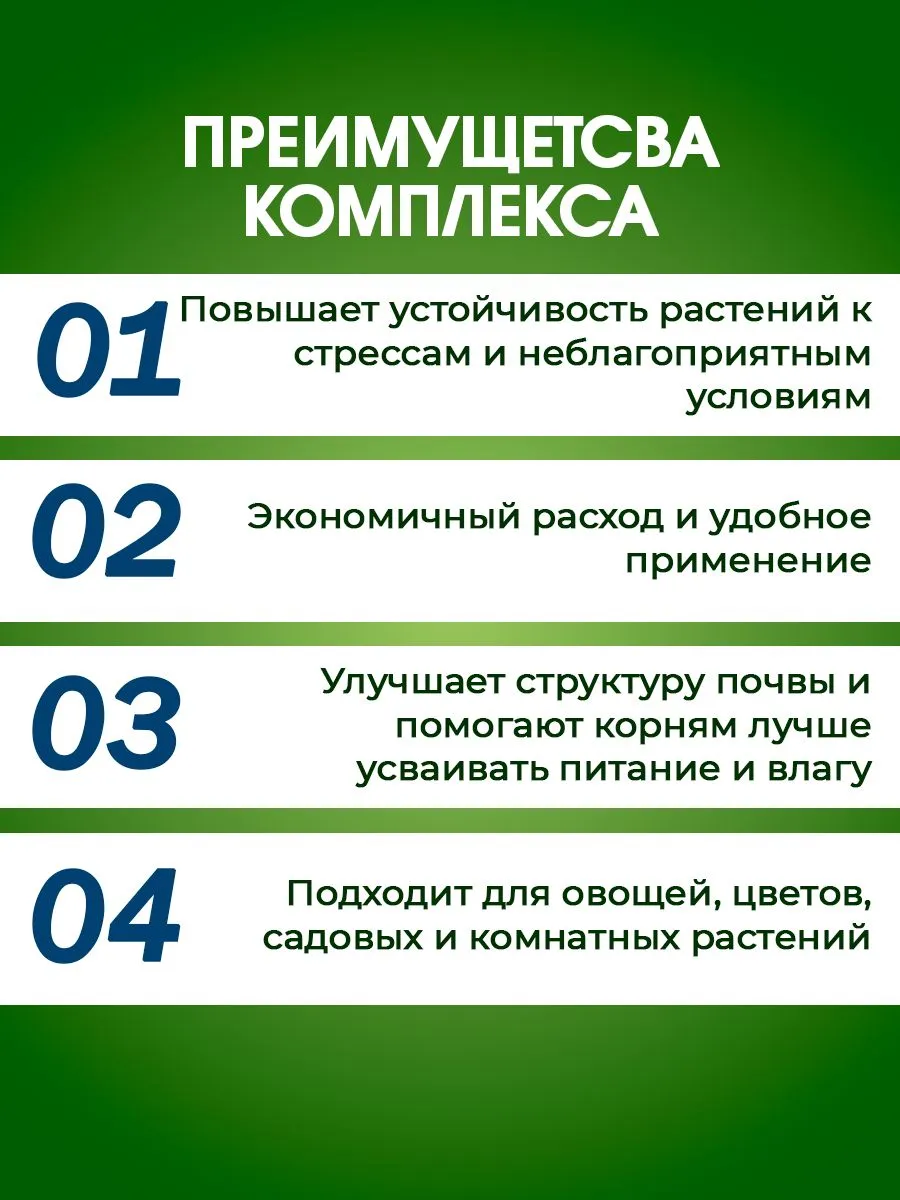 Биогумус — концентрированный конский навоз, богатейший источник гуминовых кислот и органических веществ. Насыщает землю большим количеством углекислого газа, усиливает скорость поступления питательных веществ в листья и плоды растения. Улучшает структуру почвы, повышает её плодородие и влагоудерживающую способность. Гуминовые кислоты стимулируют рост корневой системы — корни развиваются в 2 раза быстрее.