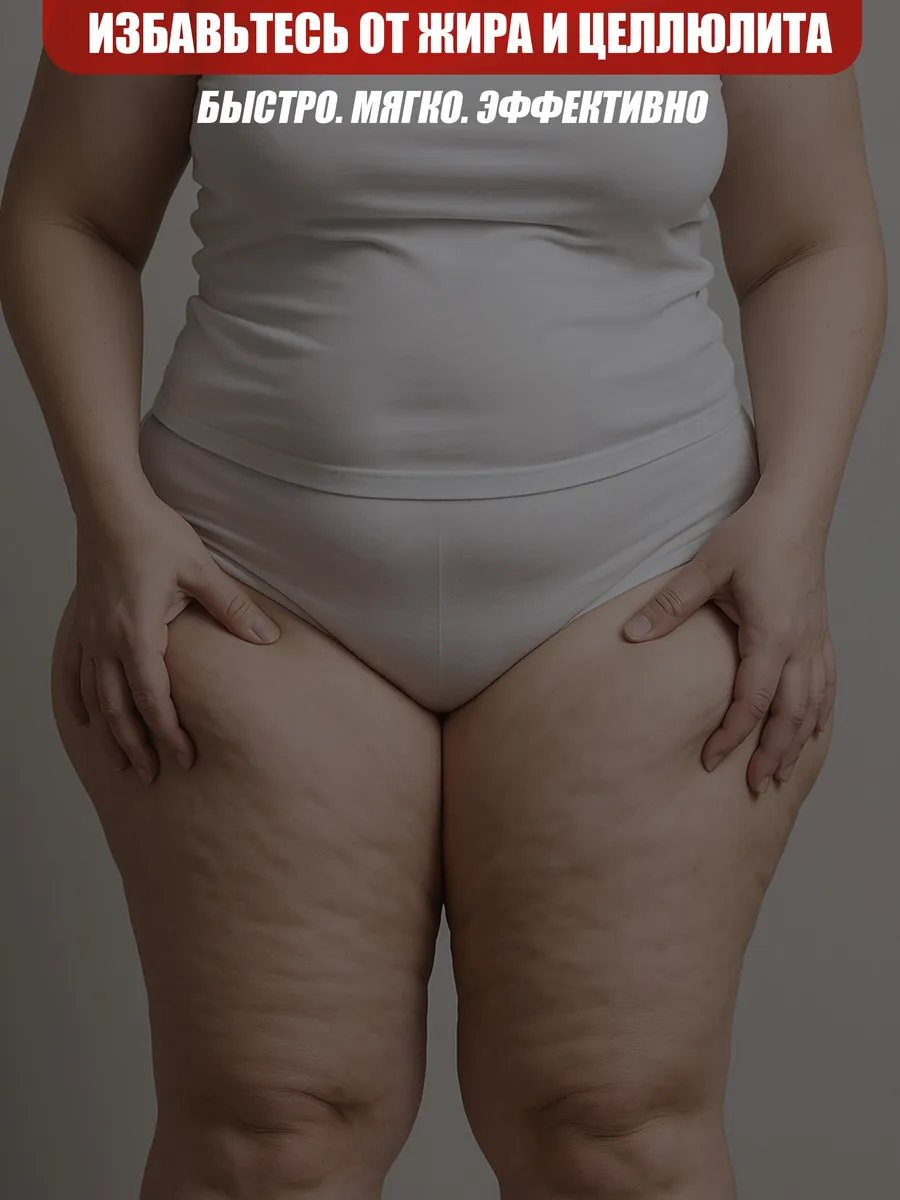 - Подкожный жир в проблемных зонах — живот, бёдра, ягодицы, бока