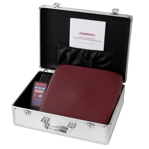 Нанопрост — запатентованный высокотехнологичный физиотерапевтический прибор нового поколения, разработанный для решения широкого спектра проблем женского здоровья: недержания мочи, цистита, геморроя, запоров, дисфункций органов малого таза и расстройств в период климакса. Прибор работает посредством комбинации вибромассажа с пульсирующим магнитным полем, направленной на устранение застойных явлений и восстановление нормального кровообращения в органах малого таза. Процедура полностью неинвазивна — женщина просто садится на подушку-вибратор и получает лечебное воздействие, не снимая одежды.