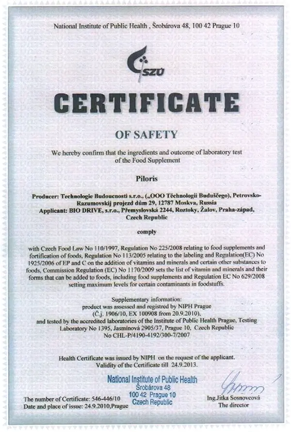 Вся продукция сопровождается сертификатами качества от официальных поставщиков и имеет полную гарантию подлинности — вы получаете только оригинальный продукт. А главное — стоимость «Пилорис» у нас на 12–15% ниже, чем в других аптеках. Качество то же, цена — выгоднее.