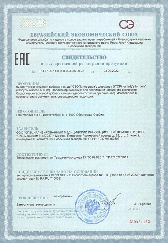 Стопинор для женщин основан на единственной запатентованной формуле, не имеющей аналогов: