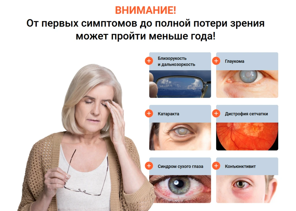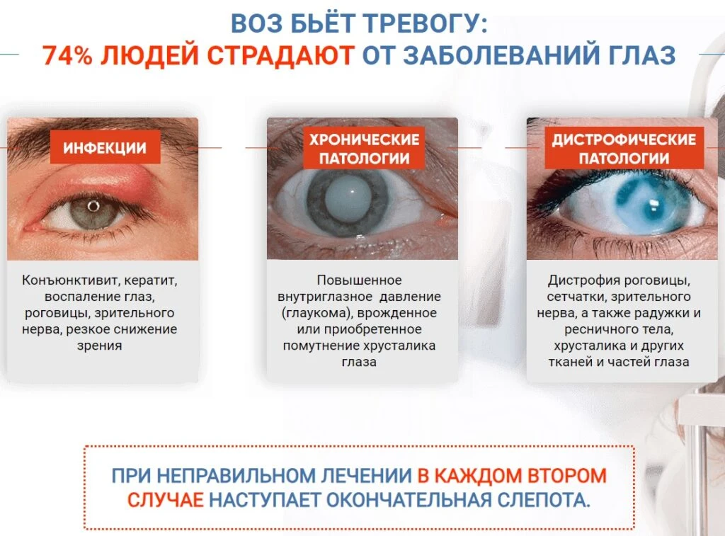 - Общая профилактика болезней глаз — для людей старше 40 лет, при наследственной предрасположенности