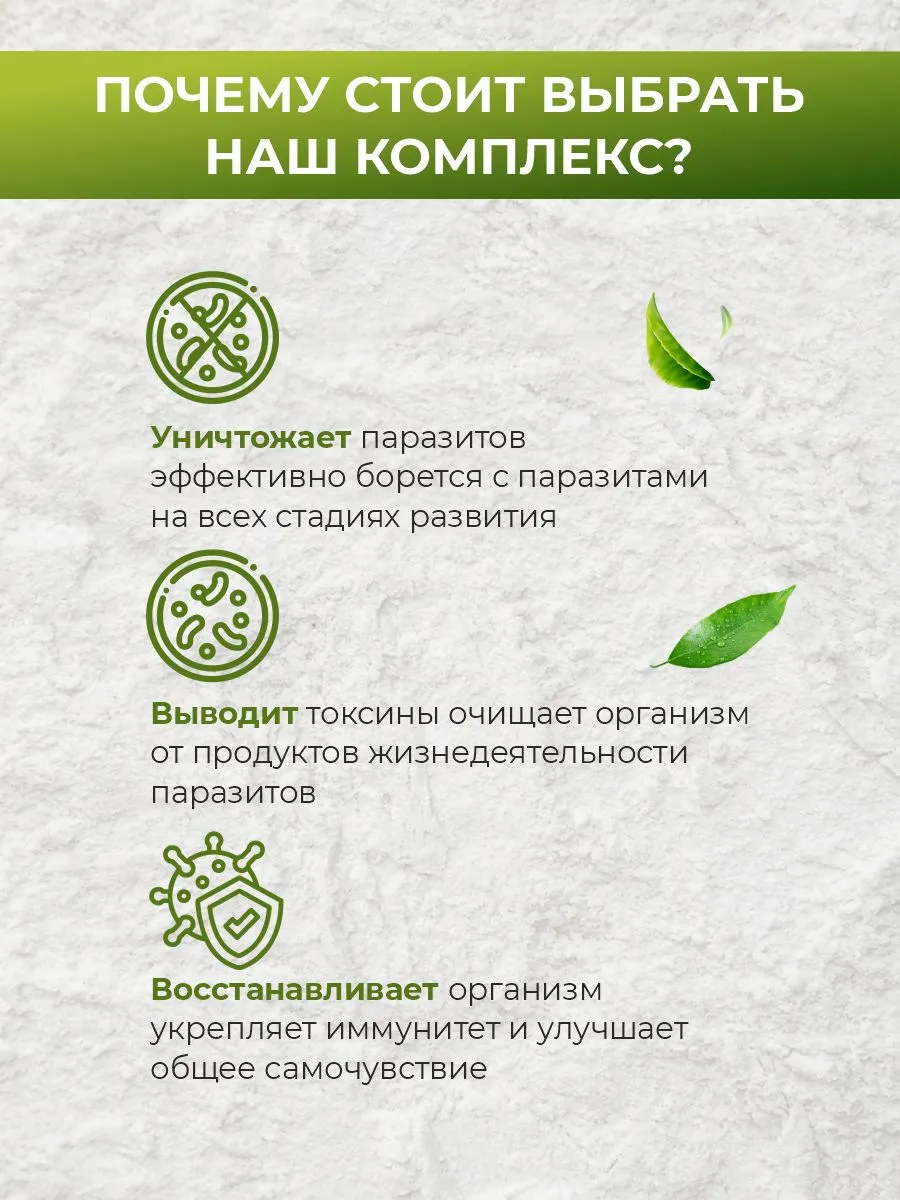 - Лёгкий дискомфорт в области ЖКТ — при активном выведении паразитов, проходит за 2–3 дня